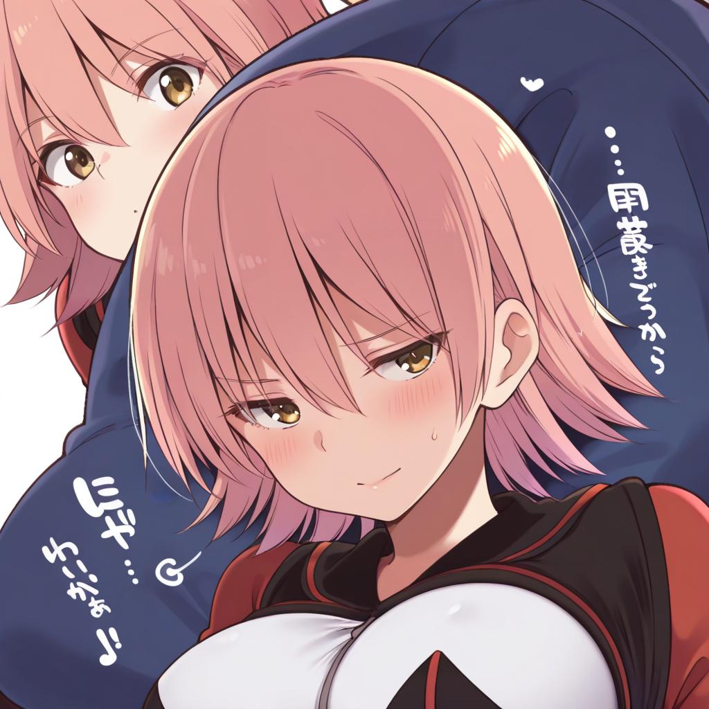 Anime-style illustration featuring a young girl with short pink hair and yellow eyes. The character, Haruko Haruhara from FLCL, is depicted with a confident expression and wearing a black and red outfit. The image includes Japanese text elements and showcases anime art characteristics in the style of artist Suzuki Toto.