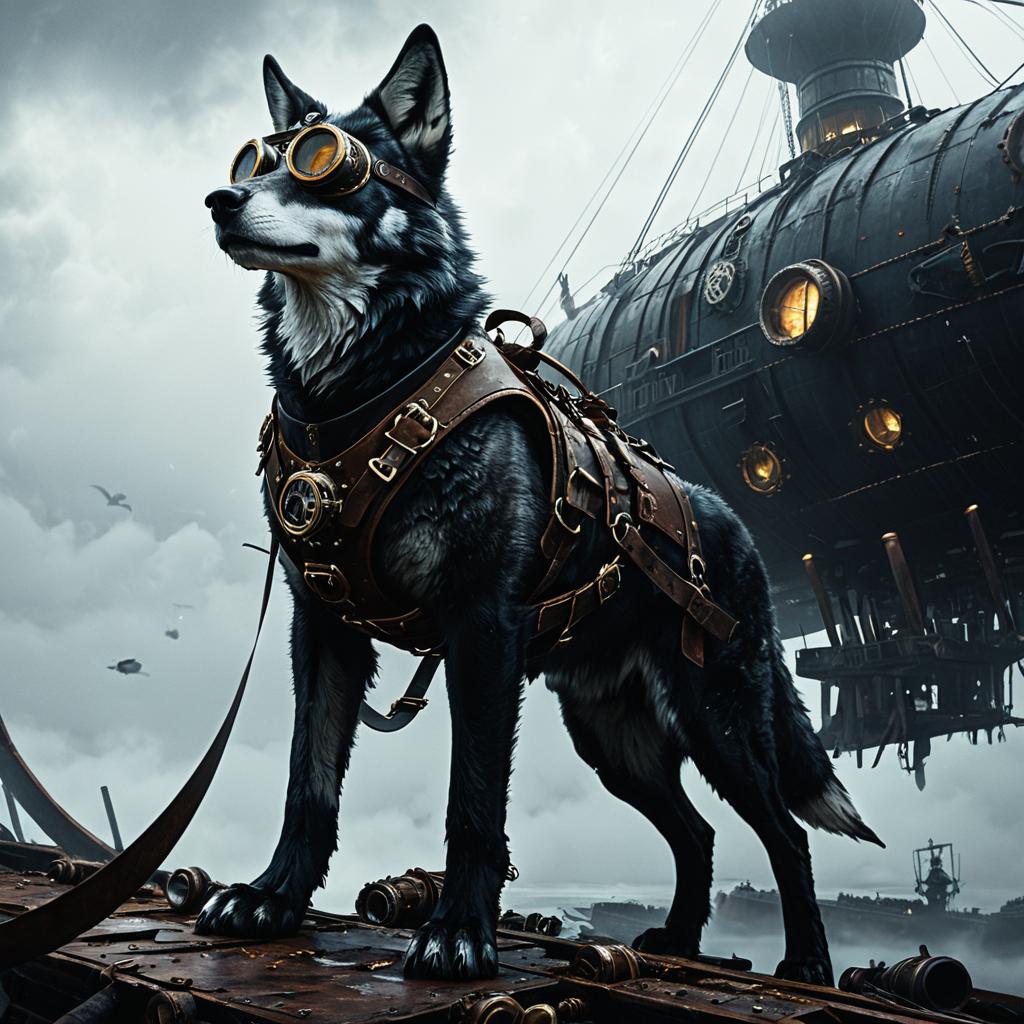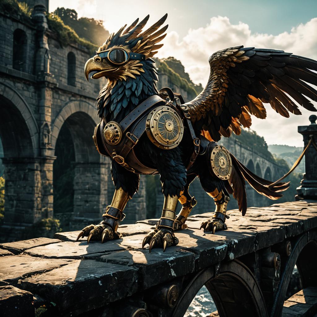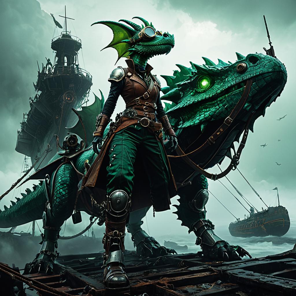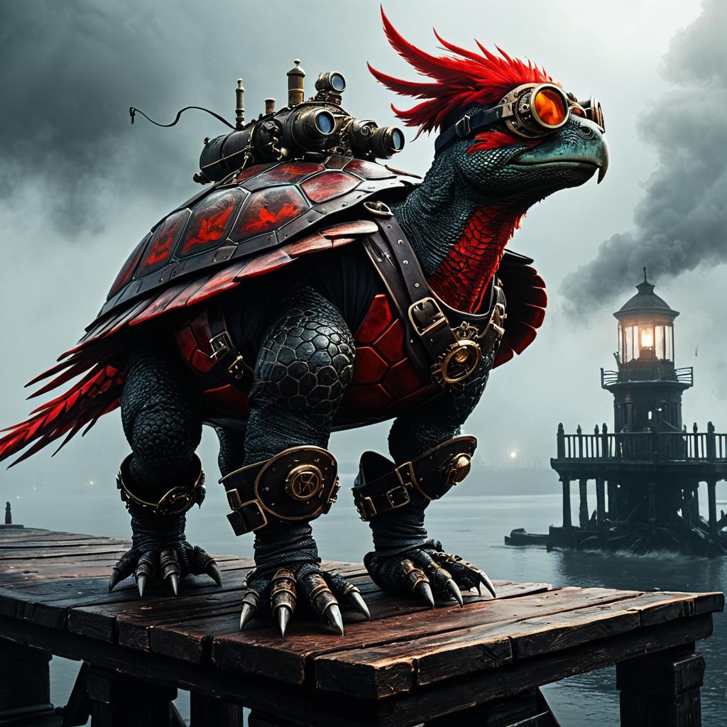 Steampunk Crimson Phoenix Turtle on Ancient Pier