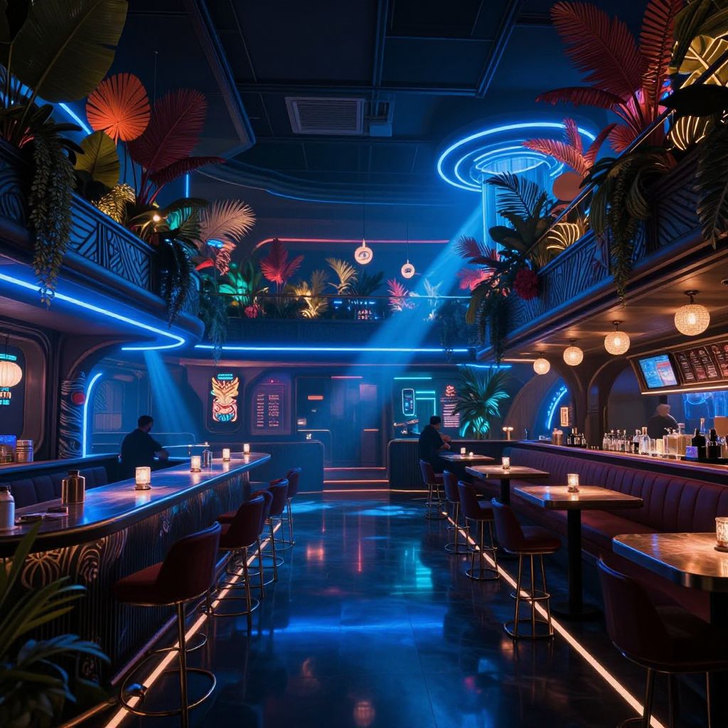 Futuristic Neon Tiki Bar Interior