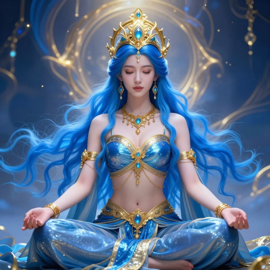 Blue-Haired Fantasy Goddess in Meditation