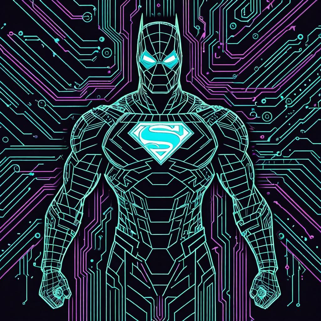 Blockchain cyber warrior, cartoon character, vector art, process art, t-shirt design, 8K, best quality, trending, perfect line work, perfect stroke, flat design, digital drawing