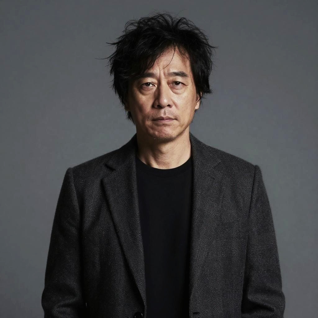 Sexy 40 year old men, creative and artistic, studio portrait, dramatic lighting, tousled hair, subtle stubble, thoughtful expression, minimalist background, stylish outfit