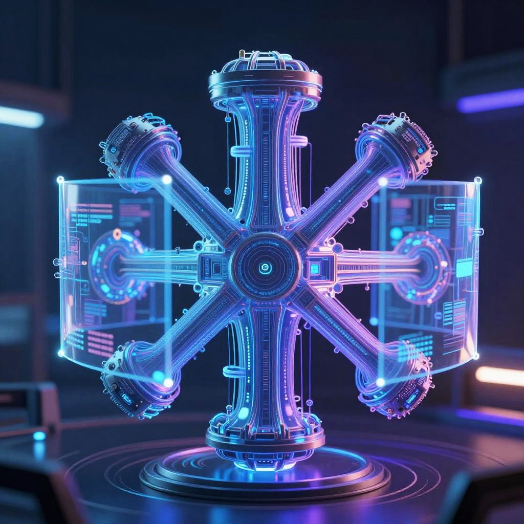 Dall.e3 advanced neural network visualization, intricate data streams forming complex 3D shapes, holographic displays with blue and purple hues, ultra-realistic digital art style, tech-inspired futuristic atmosphere with dynamic lighting