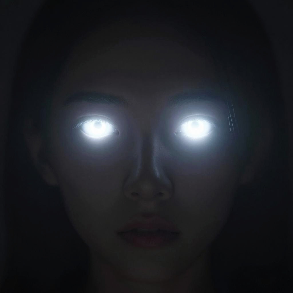 Glowing Blue Eyes in Mist