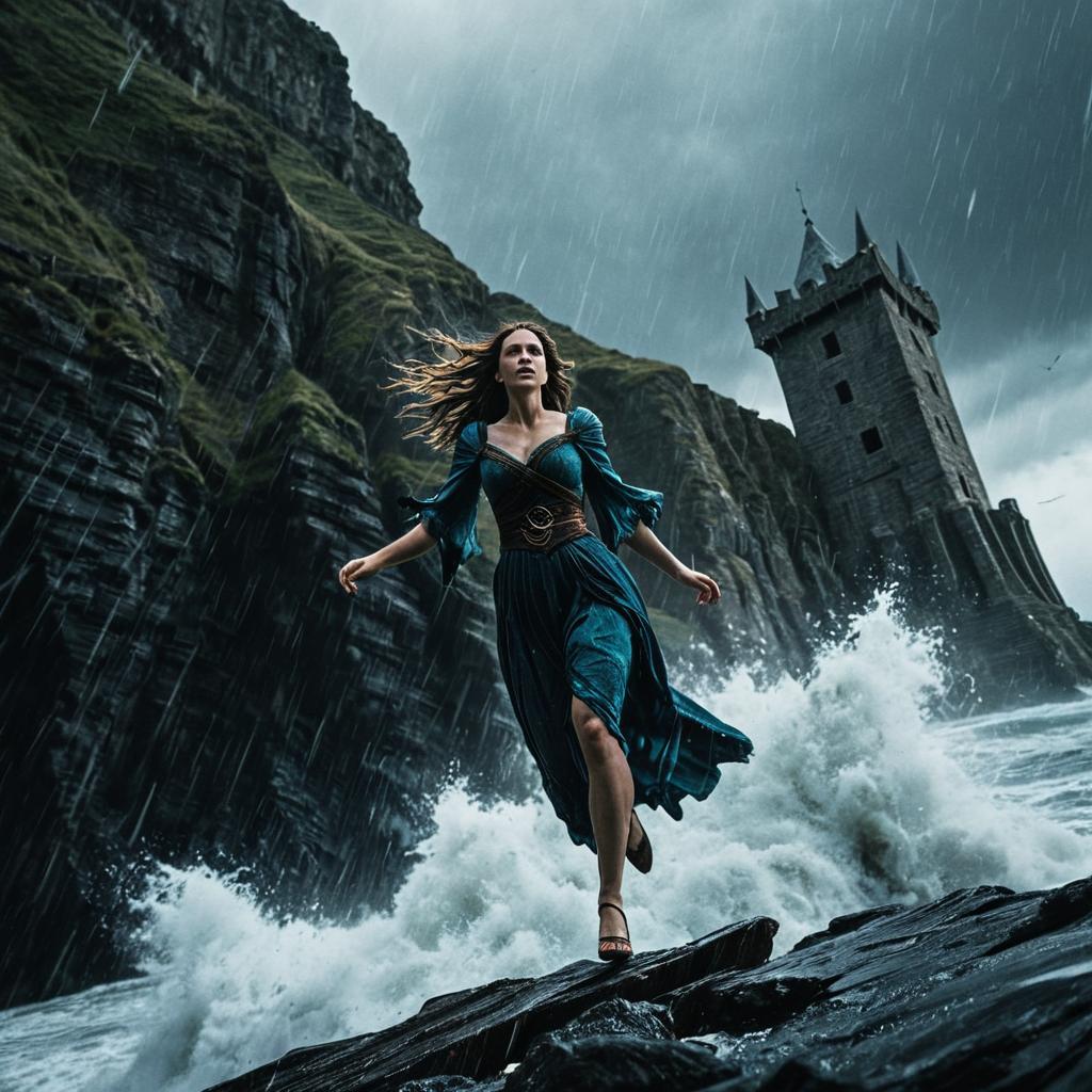 Fairy real life, screengrab, hyper realistic, cinematic live action low angle shot of a sorceress reading a spellbook, moonlit castle tower, shot on a 120mm lens, Shutter Speed 1/80, F/4, editorial photography, hyper detailed, photoshoot, cinematic lighting,