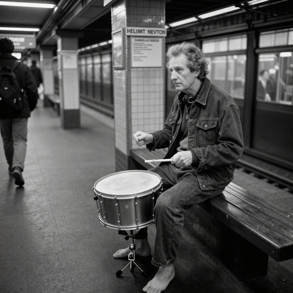 Intense black-and-white photograph of a confident businessman, set against a bustling city square, shot by Helmut Newton and Diane Arbus, intricate texture, perfect details, film grain, analog photograph, shot on Phase One camera.