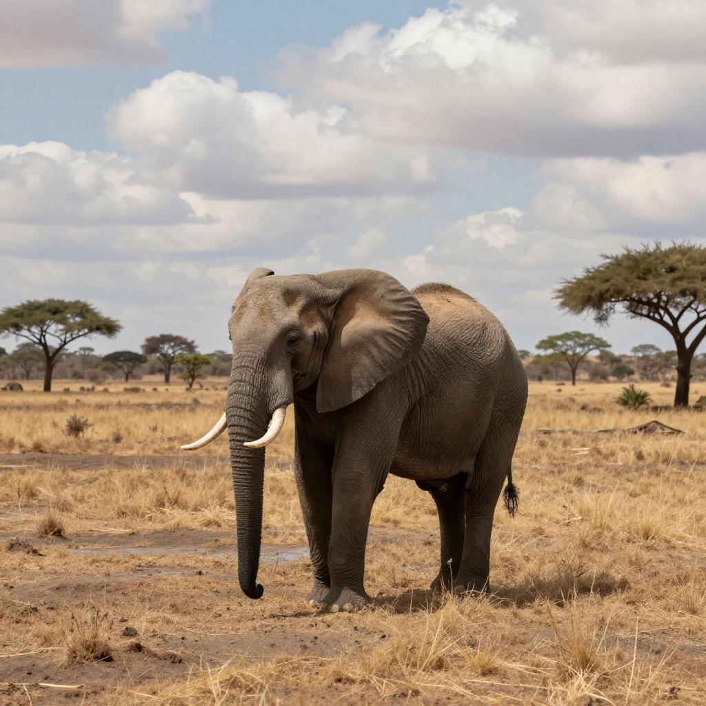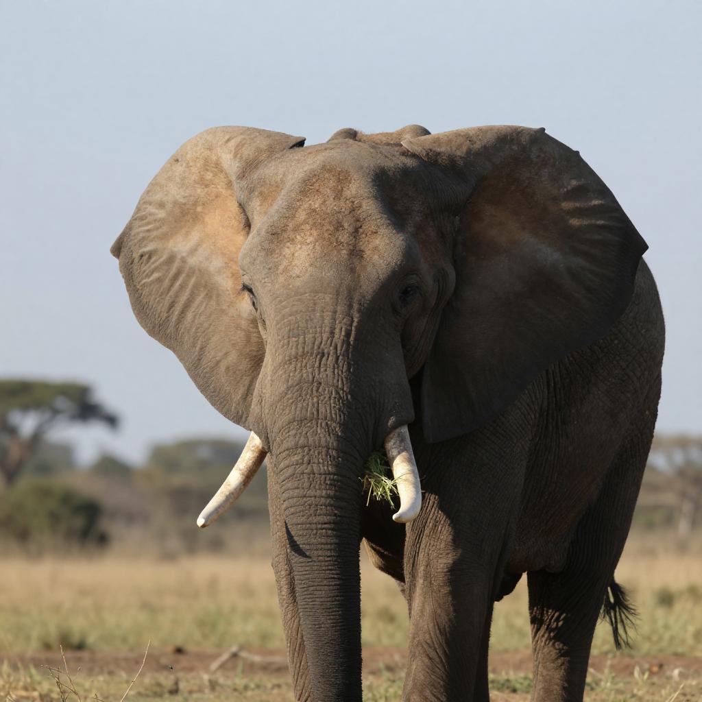 Photograph of an elephant partially hidden behind green bushes. The elephant's large, brown, fuzzy ears are spread wide, and its trunk is visible in the center. The camera angle is slightly low, giving a sense of the elephant's size. The background is slightly blurred, emphasizing the elephant in the foreground. Lighting is natural, with soft, diffused sunlight. Depth of field is shallow, focusing on the elephant while the background is slightly out of focus.
