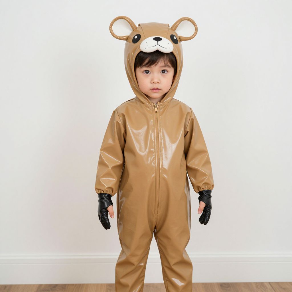 "toddler latex costume, solo, realistic, kigurumi, animal costume, looking at viewer, cosplay, male focus, 1girl, standing, 1boy, closed mouth Realistic photo of casual sexy person with pretty face"
