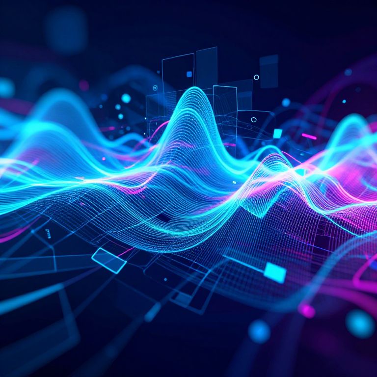 Inpainting AI algorithm visualized as abstract digital waves filling gaps in a fragmented digital canvas, glowing neon colors, cyberpunk style, dynamic motion blur, virtual reality environment, high-tech futuristic aesthetics.