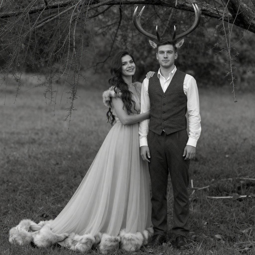 Forest-Themed Portrait in Black and White