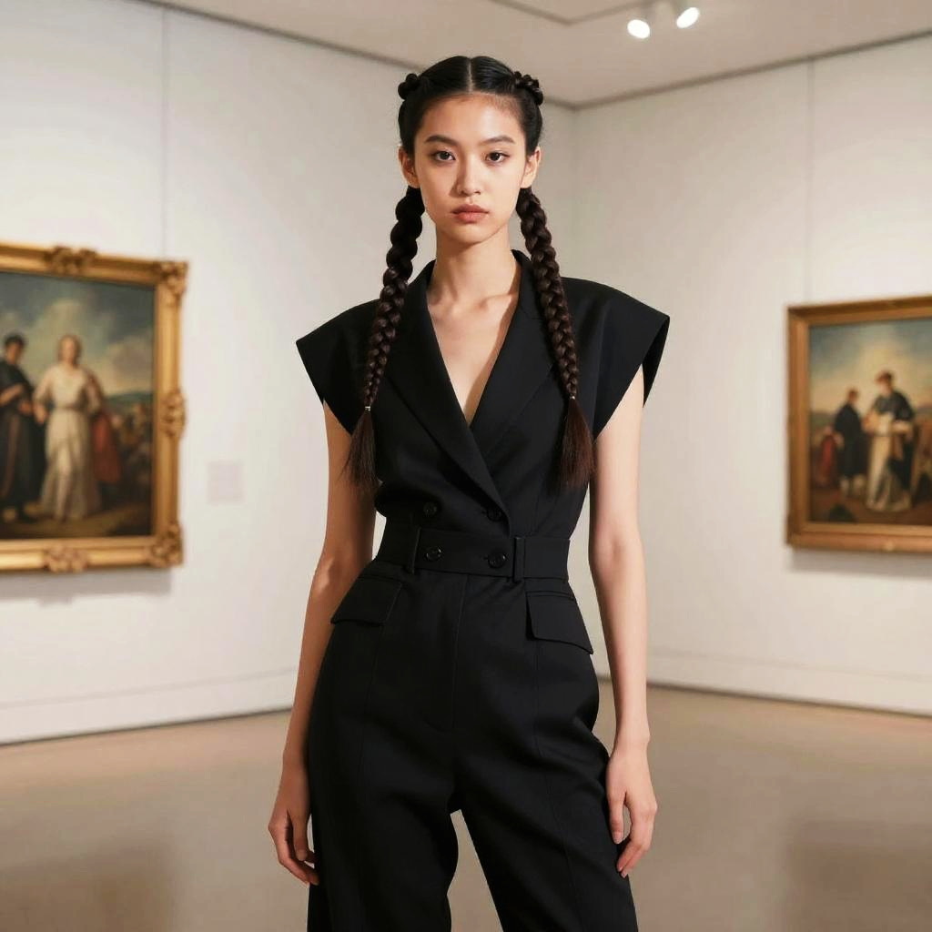 Two-Strand Twists hairstyle on female model, wearing elegant evening gown, in luxury hotel lobby, captured in fashion editorial style with dim ambient light with spotlight.
