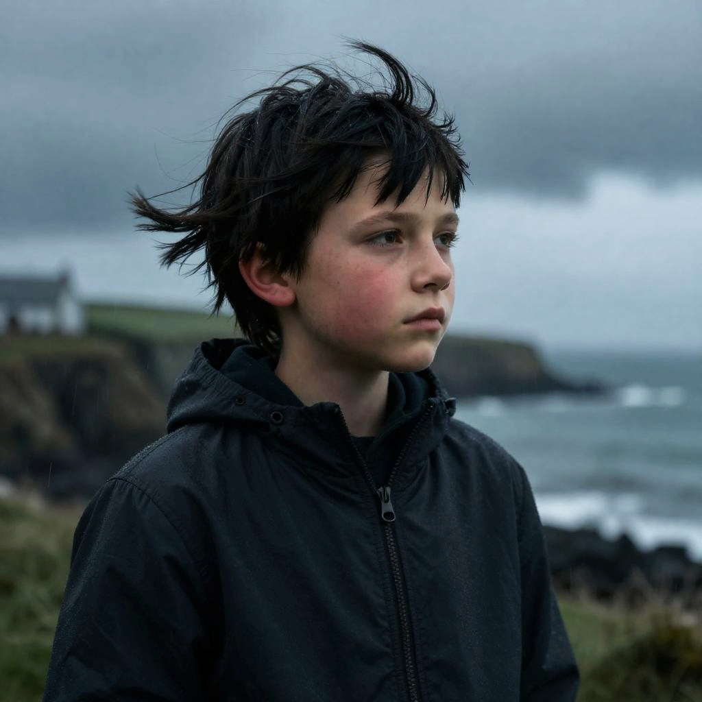Contemplative Breton Child in Storm