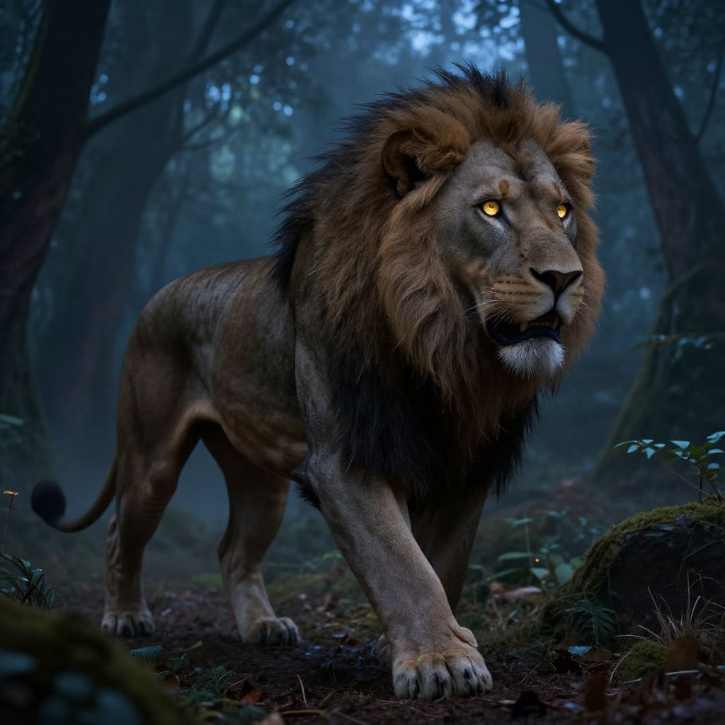 Half-Lion Mythical Beast in Enchanted Forest