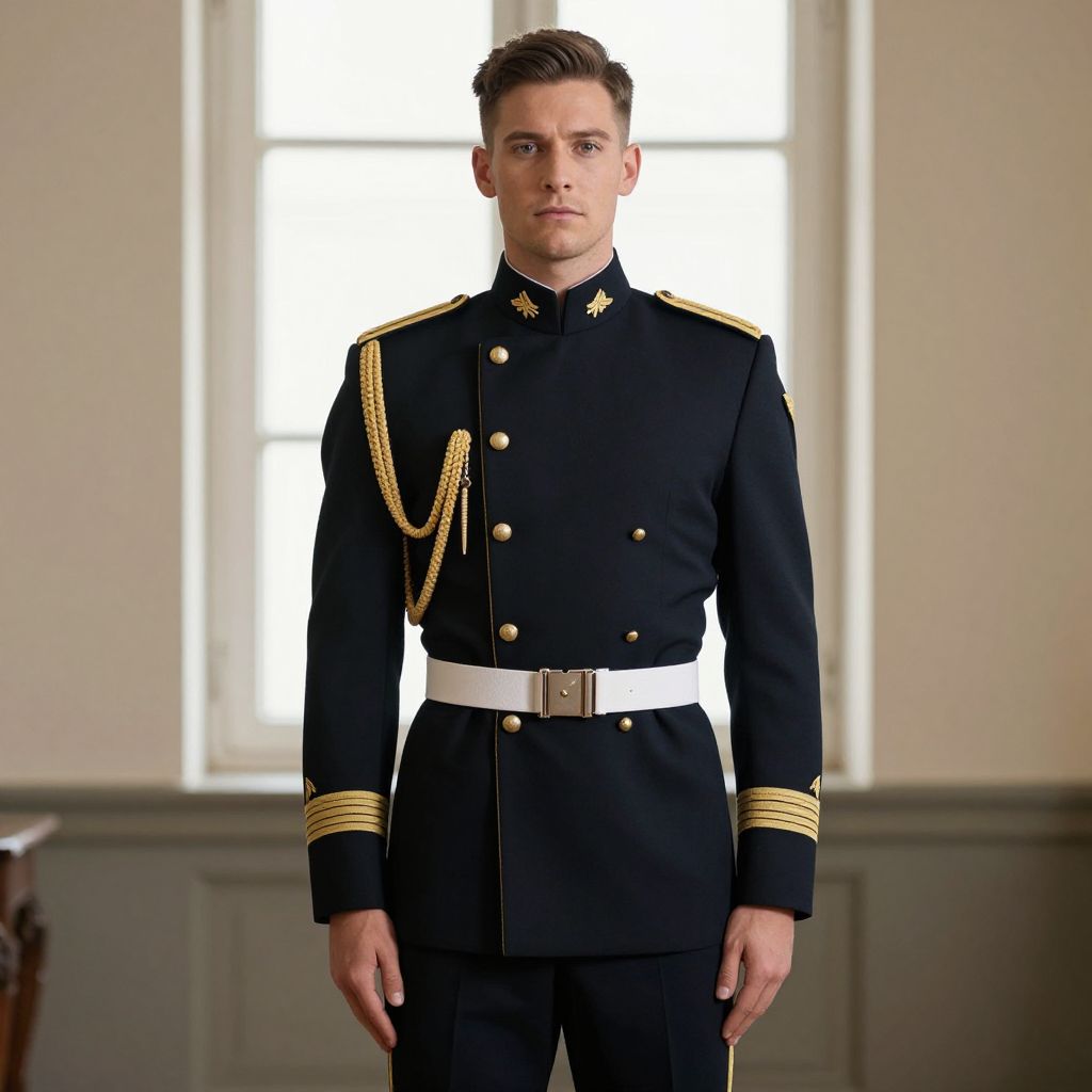 Male First Class Uniform Costume, man in uniform standing in front of a window