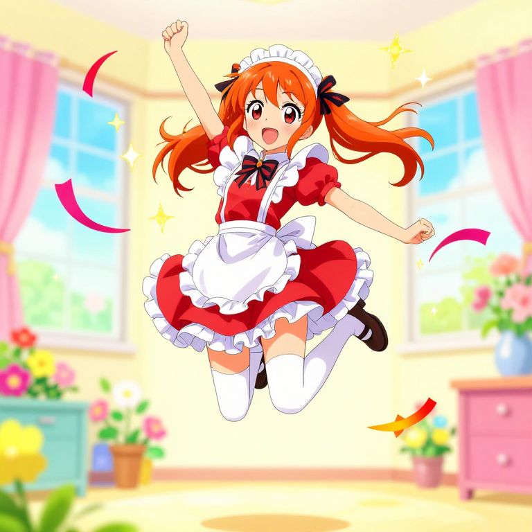 Energetic Anime Maid Jumping Cheerfully