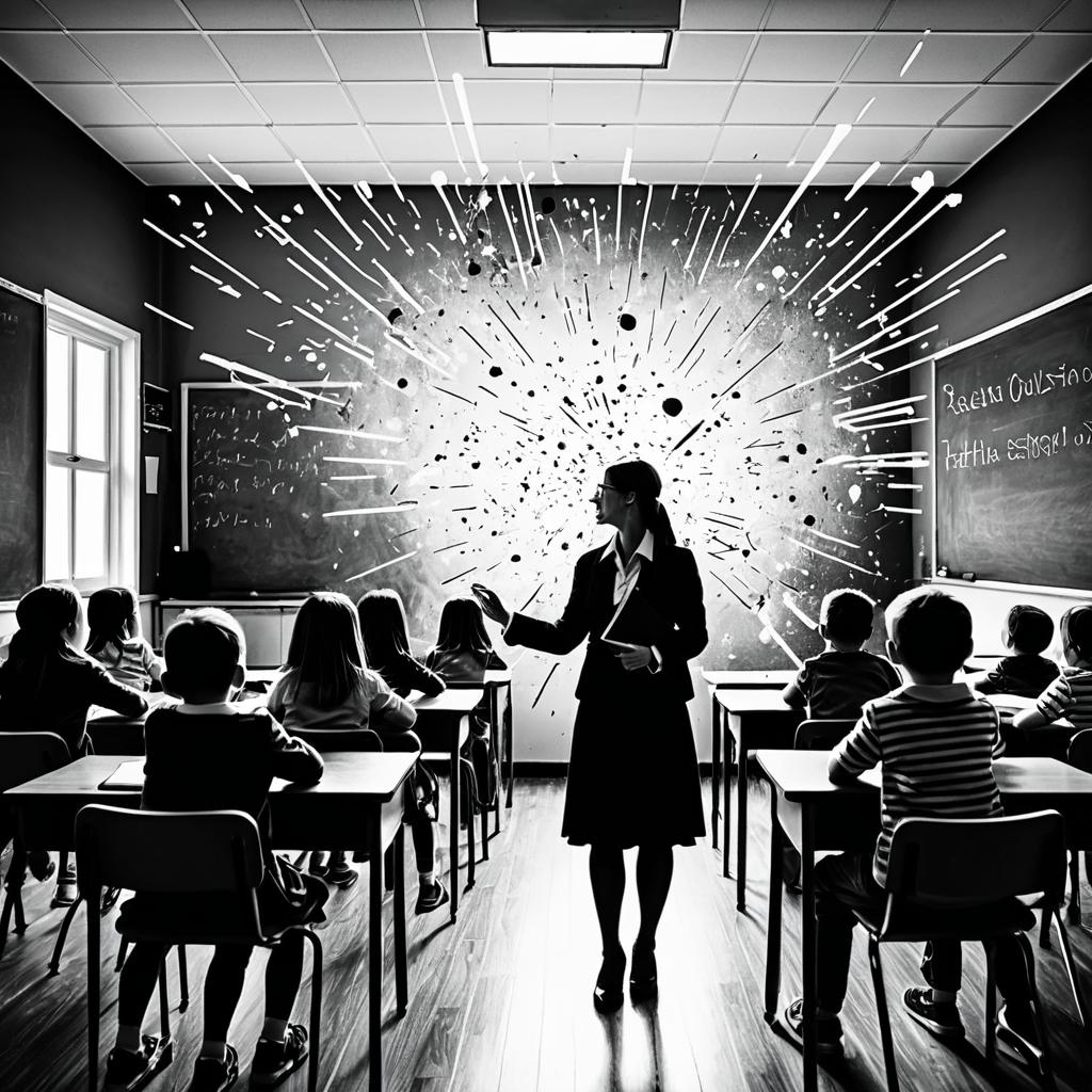 2D vector illustration of a male gamer wearing a virtual reality (VR) headset and gaming headphones. The subject is depicted with strong outlines and bold traces, wearing a blue t-shirt and cargo pants. The background features a dynamic powder explosion effect with high contrast and flat color style, emphasizing the immersive and energetic atmosphere of virtual reality gaming.