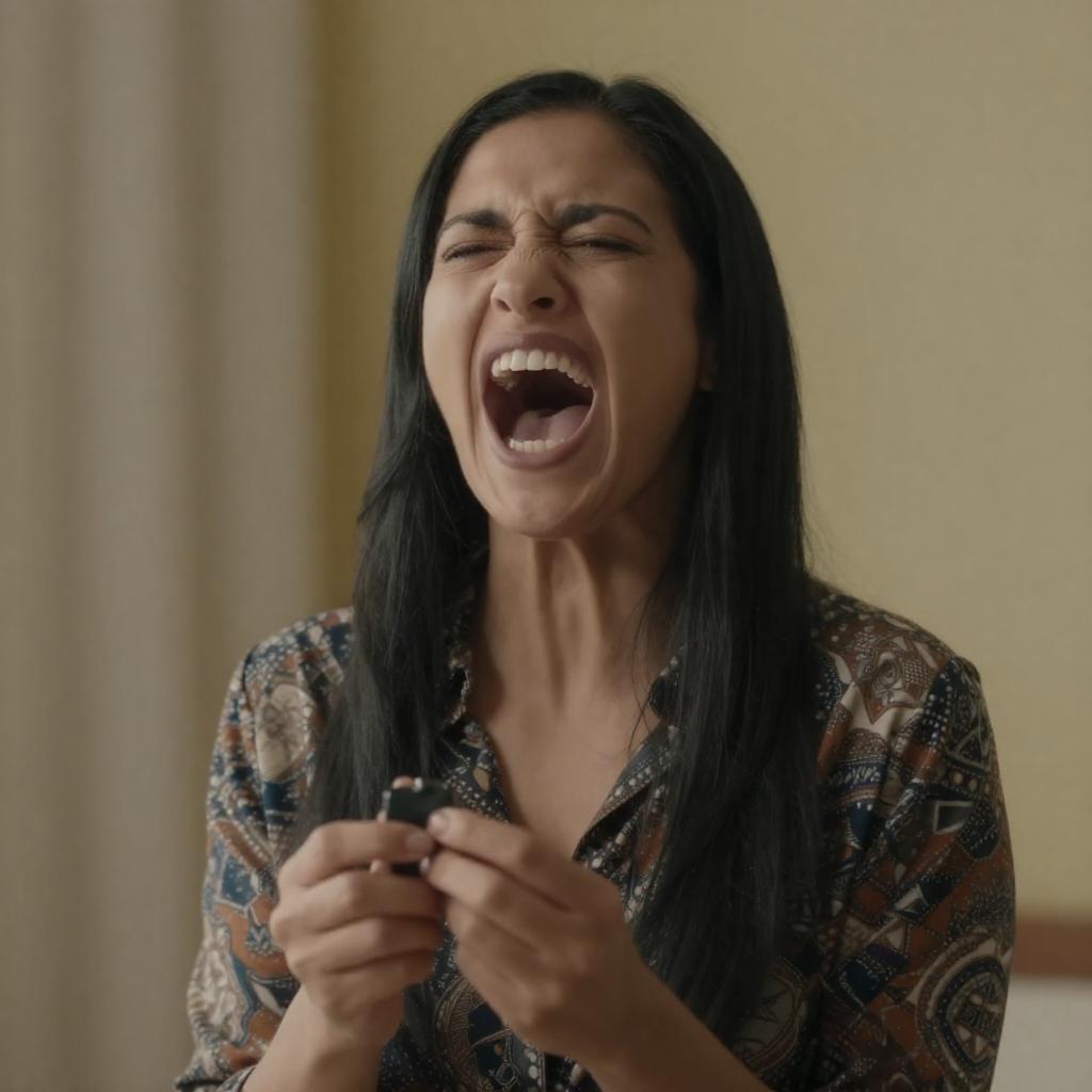 Intense Close-Up of Screaming Woman