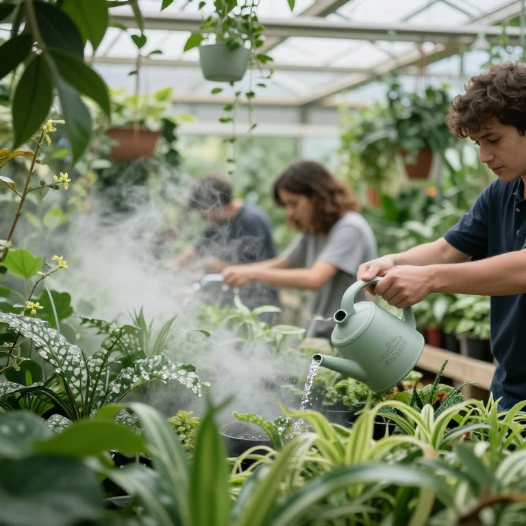 Forgetfulness is cultivated in lush greenhouses where visitors water plants with memories, each droplet fading into a plume of ephemeral mist.