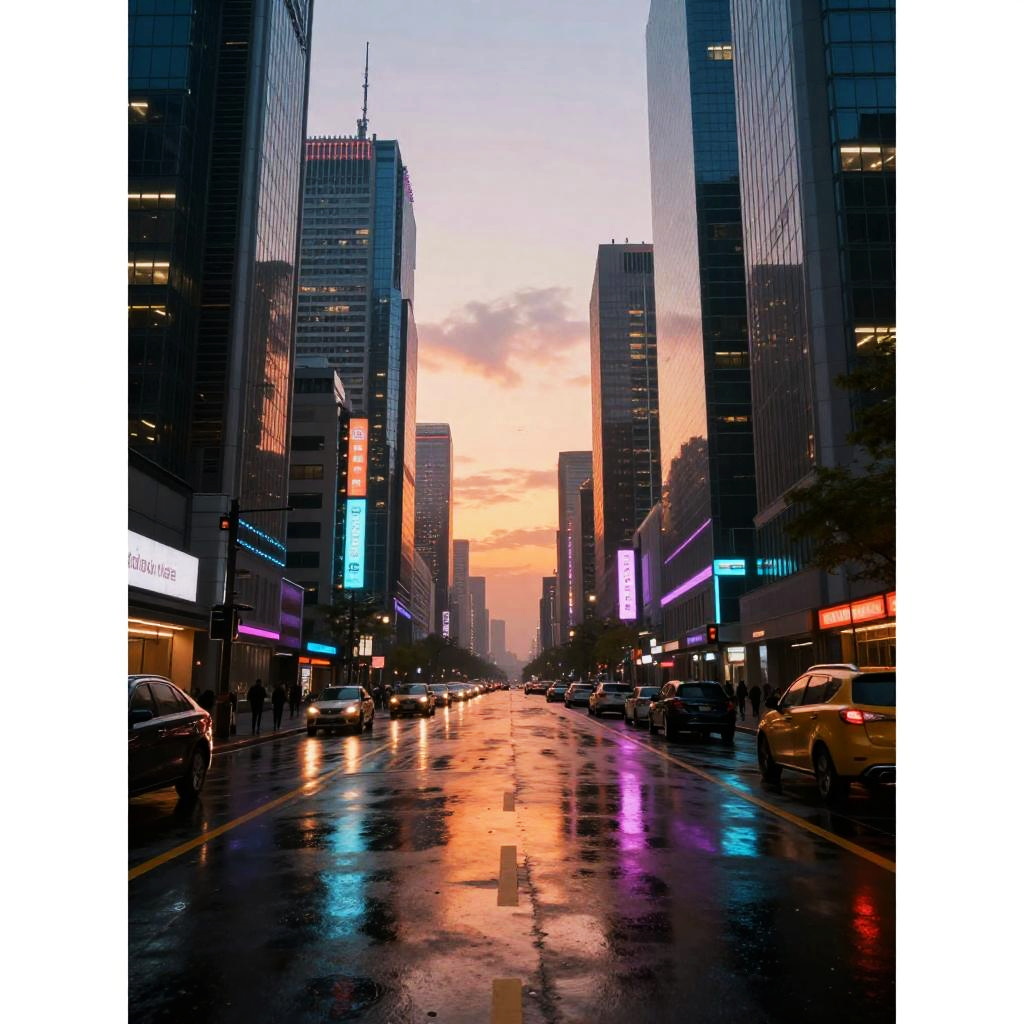 Rainbowify image of an urban city street bustling with life, neon lights and signs glowing with a spectrum of rainbow colors, giving the scene a futuristic and energetic vibe with dynamic lighting and vibrant reflections.