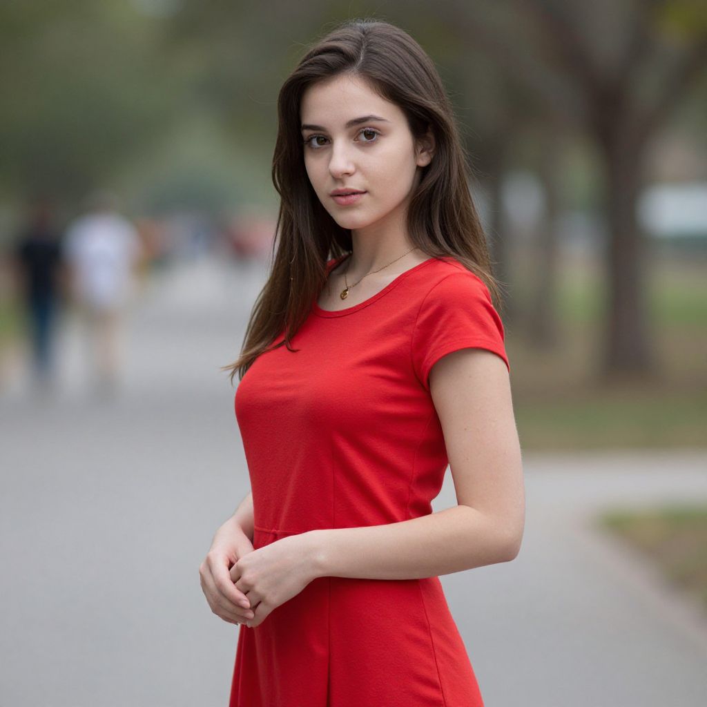 Realistic Red Dress Woman Outdoors
