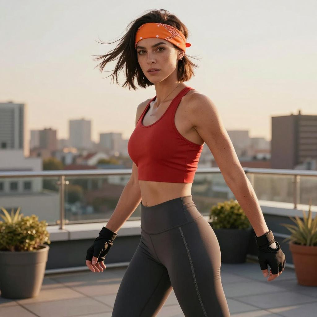 Masterpiece, best quality, highest quality, photorealistic, pandballgt, 1girl, adult, perfect anatomy, perfect face, perfect eyes, fit young woman with short platinum blonde hair and piercing blue eyes, lime compression tank top, matte charcoal jogger-shorts with mesh side panels, black wrist wraps, slim silver reflective belt pouch, slate high-top training sneakers, misty forest trail at dawn, dynamic pose, natural skin texture, skin pores, realistic fabric folds, subtle freckles, cinematic color grading, rim lighting, soft shadows, shallow depth of field, crisp focus, dramatic sky, windblown hair, authentic urban vibe