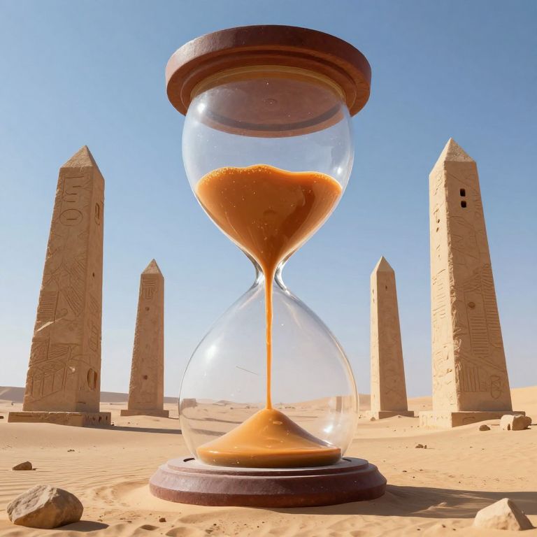 Giant hourglasses loom like obelisks over deserts, with rivers of molten time flowing upward instead of downward.