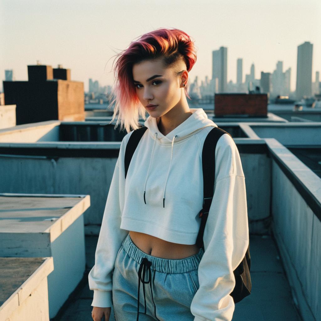 Fashion Model with Two-Tone Hair on Rooftop