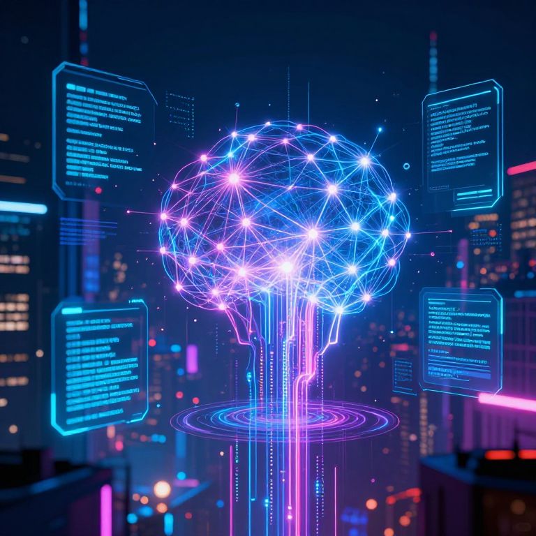 A digital CGI artwork depicts a glowing, bioluminescent tree with a neon blue and purple hue. The tree is adorned with circular, glowing nodes displaying alphanumeric codes such as "ALPHA" and "MLL." The background features a dark, cyberpunk-style room with floating screens displaying code snippets. The tree's branches and leaves are intricately detailed, with a futuristic, sci-fi aesthetic. The scene is illuminated by the vibrant glow of the tree, creating a high-tech, otherworldly atmosphere. The image combines elements of nature and technology in a visually striking, futuristic composition.