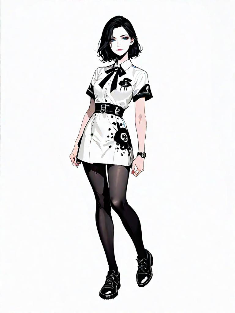 1girl, source_comics, realistic face, full body shot, Woman, casual, red and black checkered button-down shirt, collar, short sleeves, front pockets, light wash distressed denim jeans, mid-rise, skinny fit, frayed holes, ankle length, black open-toe ankle strap heels.