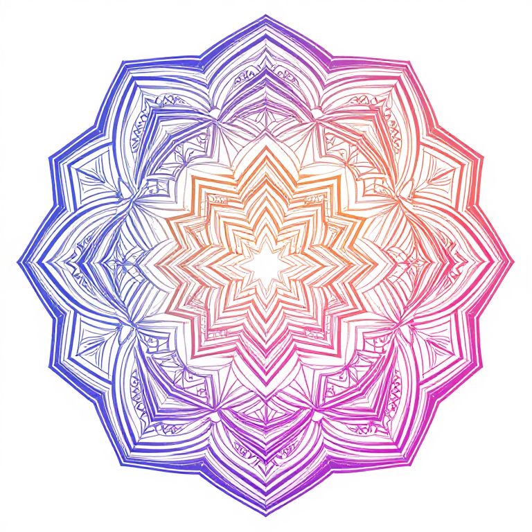 Art generator AI producing intricate mandala patterns with symmetrical geometric shapes and vibrant gradients, blending traditional art motifs with futuristic digital effects, clean lines and highly detailed ornate design, visually mesmerizing and colorful.