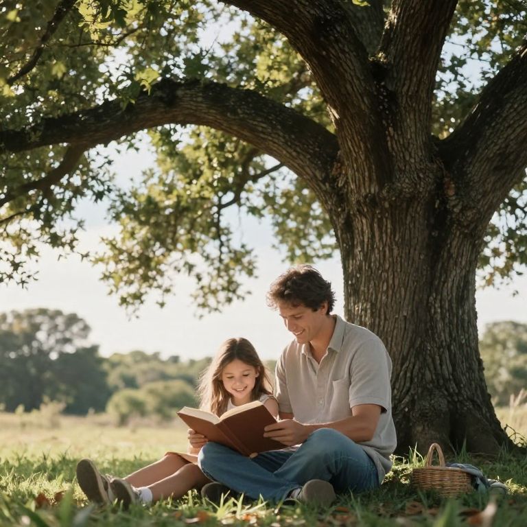 A rustic wooden treehouse built into a large oak tree in a quiet suburban backyard, supported by thick ropes and wooden beams. A teenage boy with short black hair and a slightly crooked nose is leaning against the front window, reading a book, with birds flying around in the background.