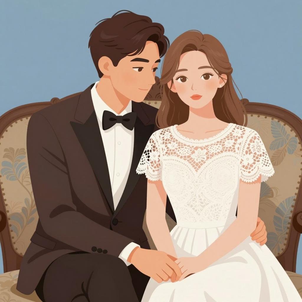 Heartwarming Family Illustration in Black-and-White