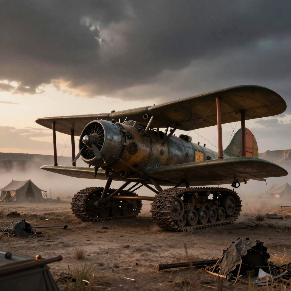 Steampunk Gyrocopter in Post-Apocalyptic Wasteland