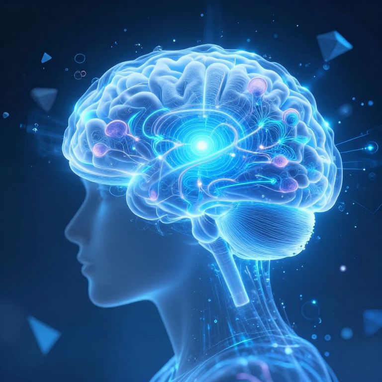 Neon-lit, digital illustration of a human head in profile, highlighting vibrant red and blue neural pathways against a black background.
