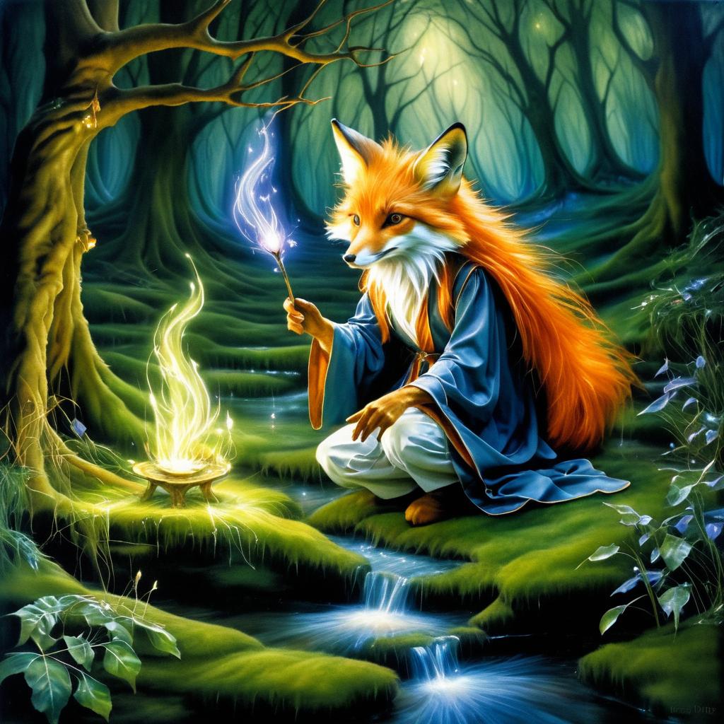 Fox Mage Casting Spells in Enchanted Forest