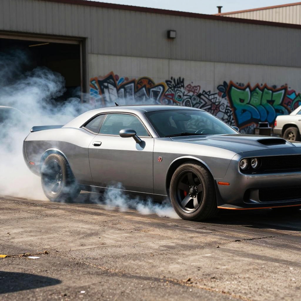 Red Dodge Demon Muscle Car Burnout