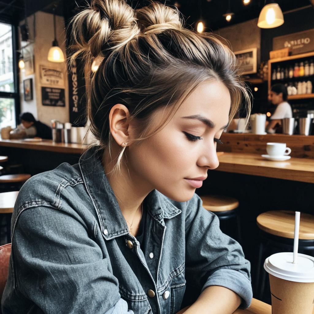 Chic Messy Bun in Urban Café Setting