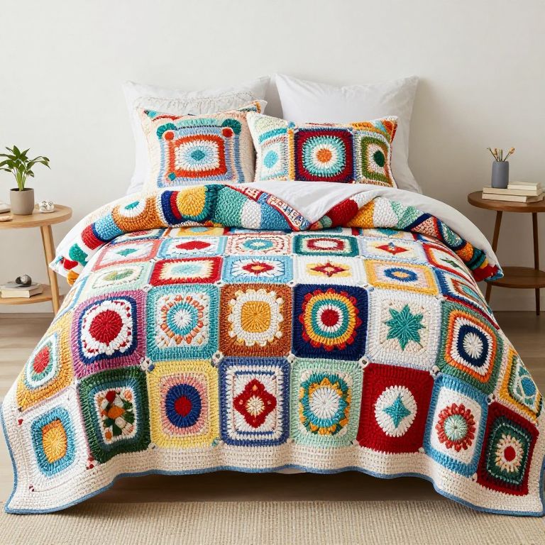 Bed sheets designs patchwork - Crochet Bedsheet 30