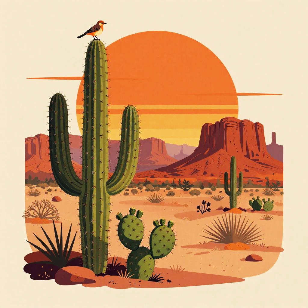 Vintage Southwestern Desert Illustration