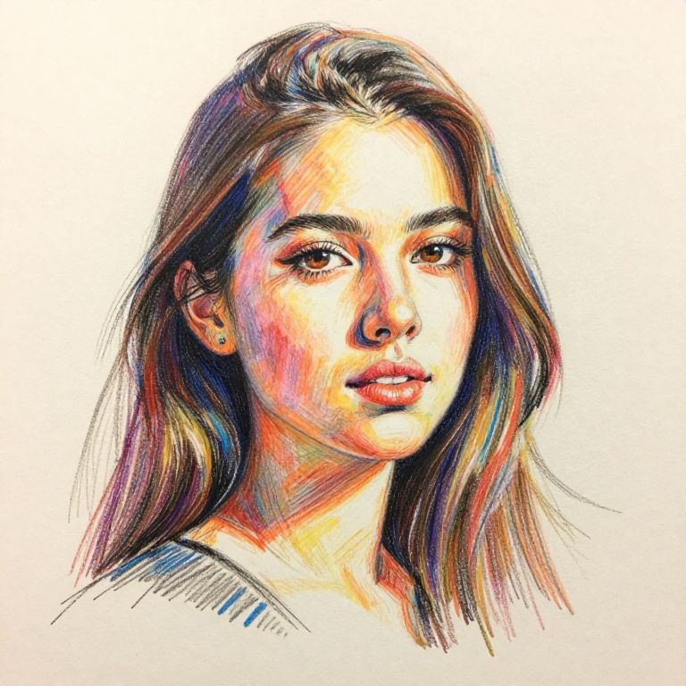 Turn my photo into a drawing, vibrant colored pencil artwork, emphasizing bold strokes and dynamic lines, blending realism and artistic impressionism, textured paper effect with visible pencil marks and cross-hatching, warm and inviting tones.